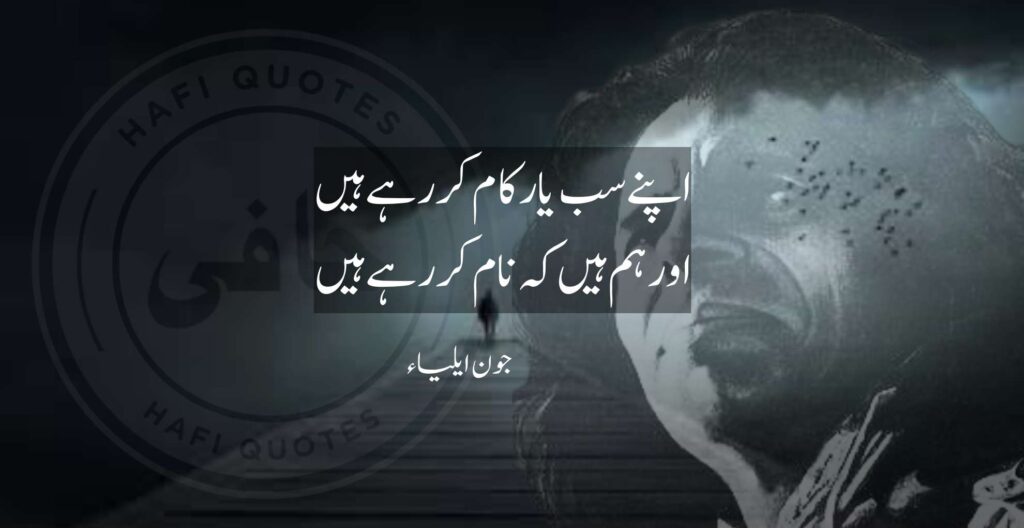 These verses paint a haunting portrait of isolation, regret, and the crushing weight of unfulfilled desires. The poet contrasts himself with friends who are moving forward (“Apne sab yaar kaam kar rahe hain…”), while he remains stuck, lost in memories and unanswered questions. Some lines ache with longing—“Ab bhi tum meri zindagi ho kya?”—while others simmer with frustration (“Ilaaj ye hai ke majboor kar diya jaun…”). There’s a quiet resignation in the acceptance of ruin (“Ek hi to hawas rahi hai humein…”) and the bitterness of envy (“Jo bhi khush hai hum us se jalte hain…”). The words echo the pain of unspoken connections (“Tu ne to hum se aaj tak koi gila nahi kiya…”) and the haunting curiosity about those who won the affection he once sought (“Jaane kaise log wo honge…”).